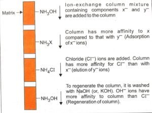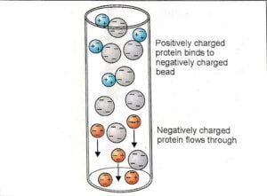 In this type of chromatography the stationary phase used is an ion-exchange chromatography resin for separation of constituents based on the number and types of charges present on the column as shown below–