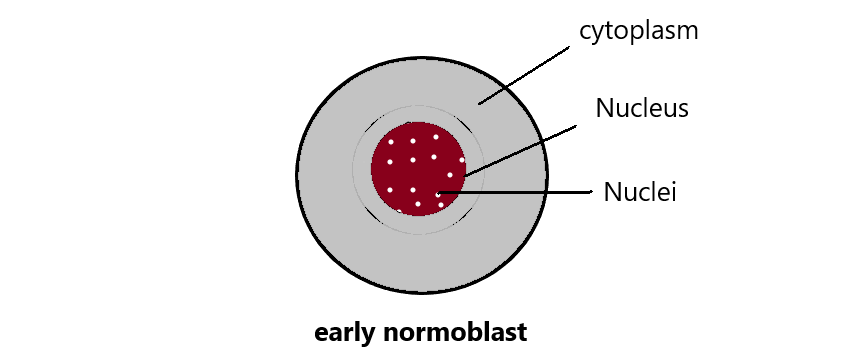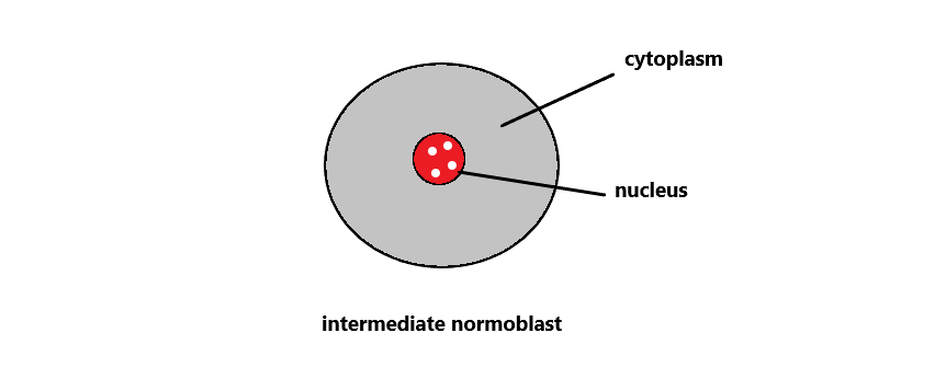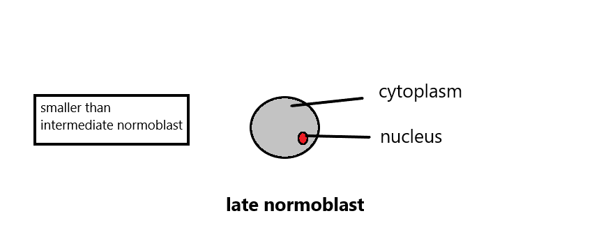 cell is smaller than the earlynormoblast with a diameter of 10 to 12 Micron the nucleus is still present.